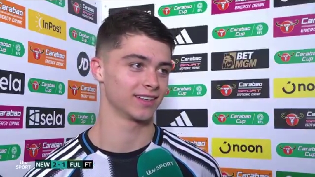 In a year dominated by polished, rehearsed soundbites from Premier League stars, Newcastle United’s Lewis Miley delivered what many are calling the coldest – and most refreshingly unfiltered – interview response of 2025. The 19-year-old academy graduate, thrust into an unfamiliar right-back role due to injuries, scored a dramatic stoppage-time header to seal a 2-1 Carabao Cup quarter-final victory over Fulham on December 17 at St. James’ Park.With the holders Newcastle staring at penalties after Yoane Wissa’s opener was cancelled out by Sasa Lukic, Miley rose highest to glance Sandro Tonali’s corner into the net, sending the Geordie faithful into ecstasy and booking a semi-final clash with Manchester City.